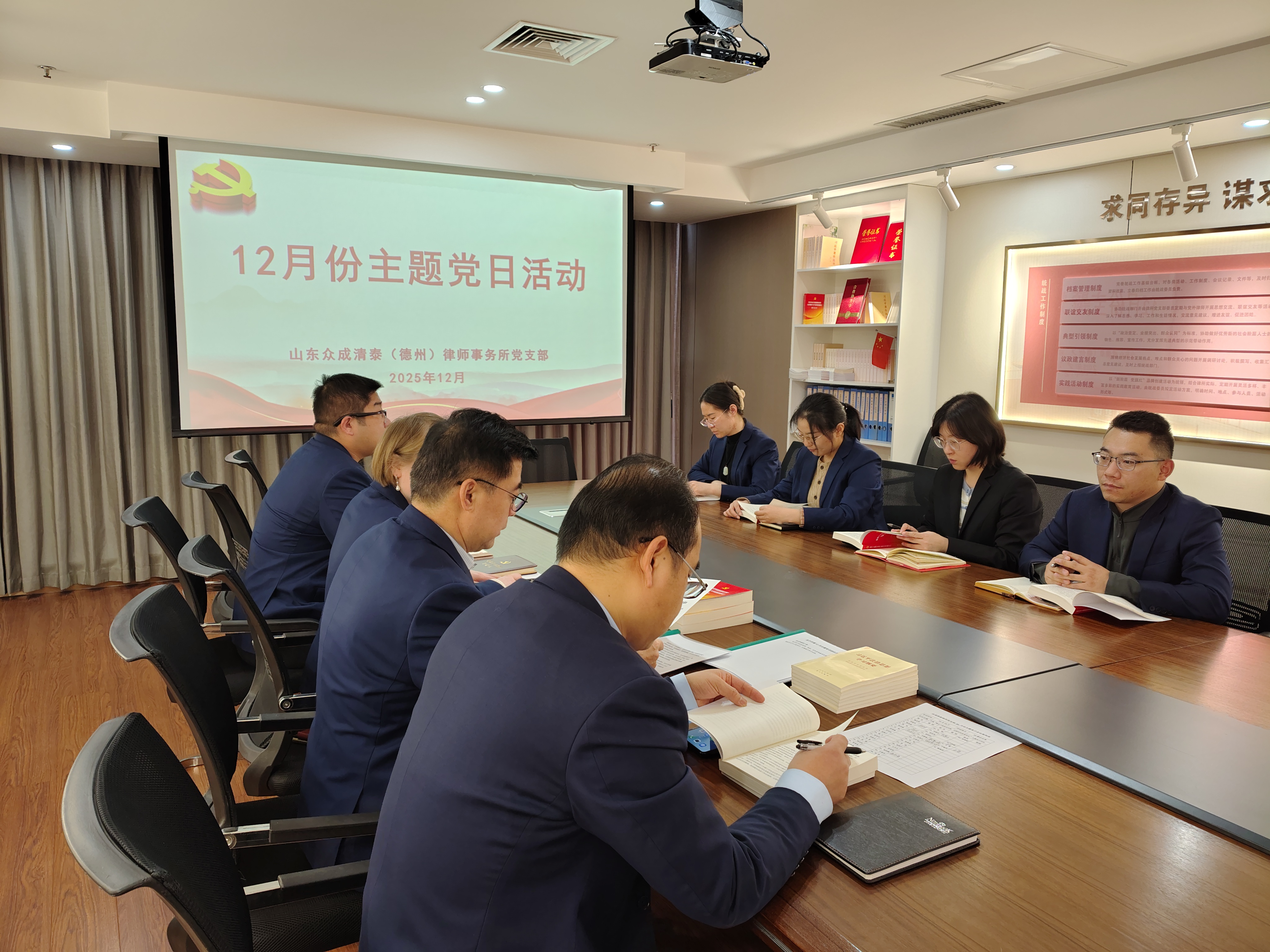 为深入学习宣传贯彻党的二十届四中全会精神,引导全体党员律师进一步凝聚共识、鼓足干劲,对标对表完成年底各项目标任务,以实际行动确保律所党建工作高质量发展。12月19日,山东众成清泰(德州)律师事务所党支部组织开展12月份主题党日活动。活动由党支部专职副书记李建华主持,在所党员、入党积极分子参加。