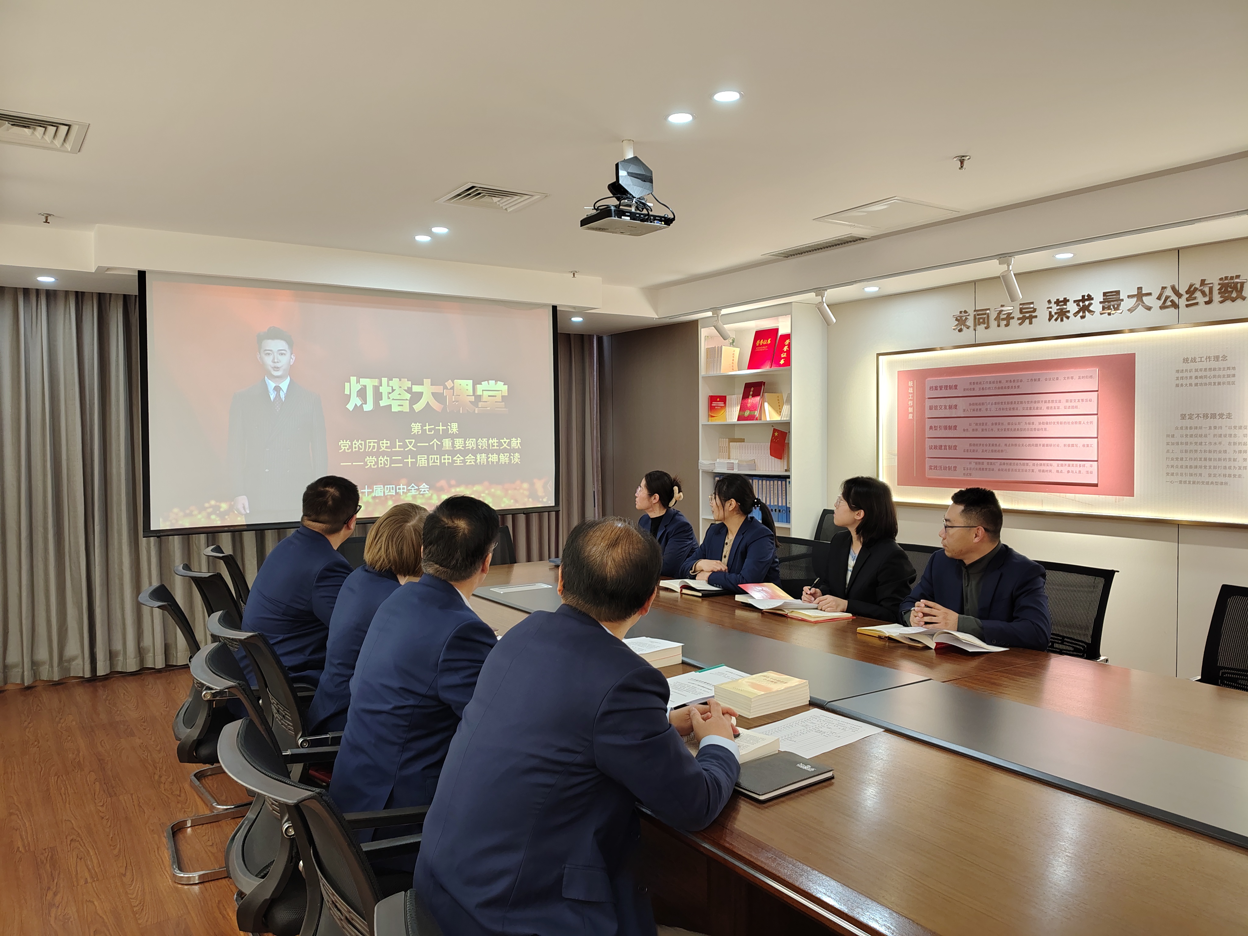其次,集中观看了“灯塔大课堂”第七十课《党的历史上又一个重要纲领性文献—党的二十届四中全会精神解读》,并学习了历年市级“七一”表彰中行业相近、岗位相似的榜样事迹,通过学习先进、对标榜样,进一步激发了干事创业、担当作为的精气神。为了进一步强化警示教育效果,支部还通过深入解读党纪法规、剖析典型案例等形式,开展了“警示教育在身边”专题活动。结合“我为群众办实事”实践要求,引导党员律师以案为鉴、警钟长鸣,切实做到知敬畏、存戒惧、守底线,筑牢拒腐防变的思想防线。