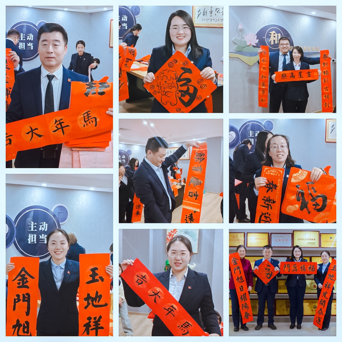 大会结束后,现场转入温馨的迎春环节。艾宪松、崔郁君、艾潇瑞律师挥毫书写的福字、春联,同仁们纷纷领取,年味浓浓。随后的晚宴与抽奖活动,更在欢声笑语中凝聚情谊,共迎新春。