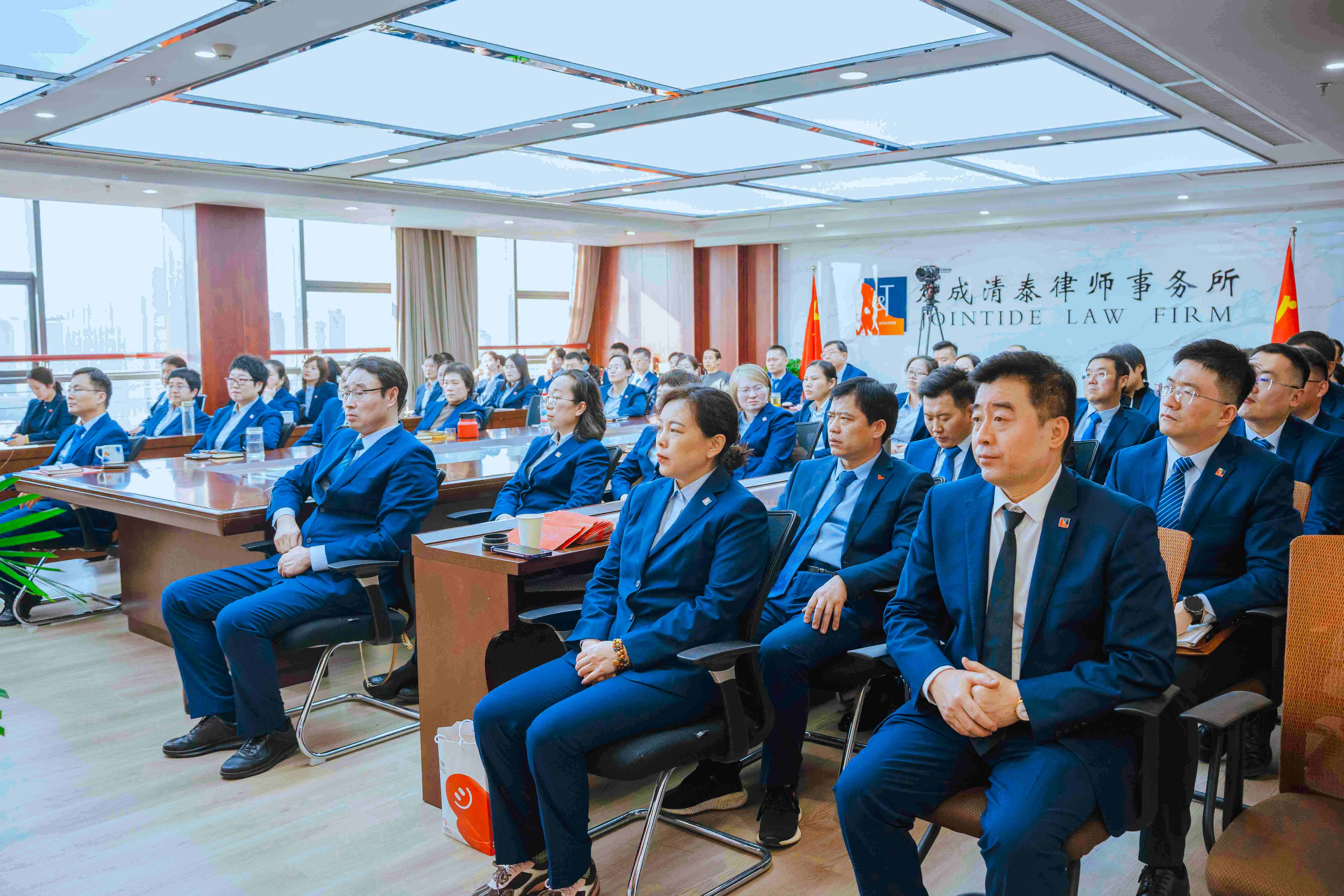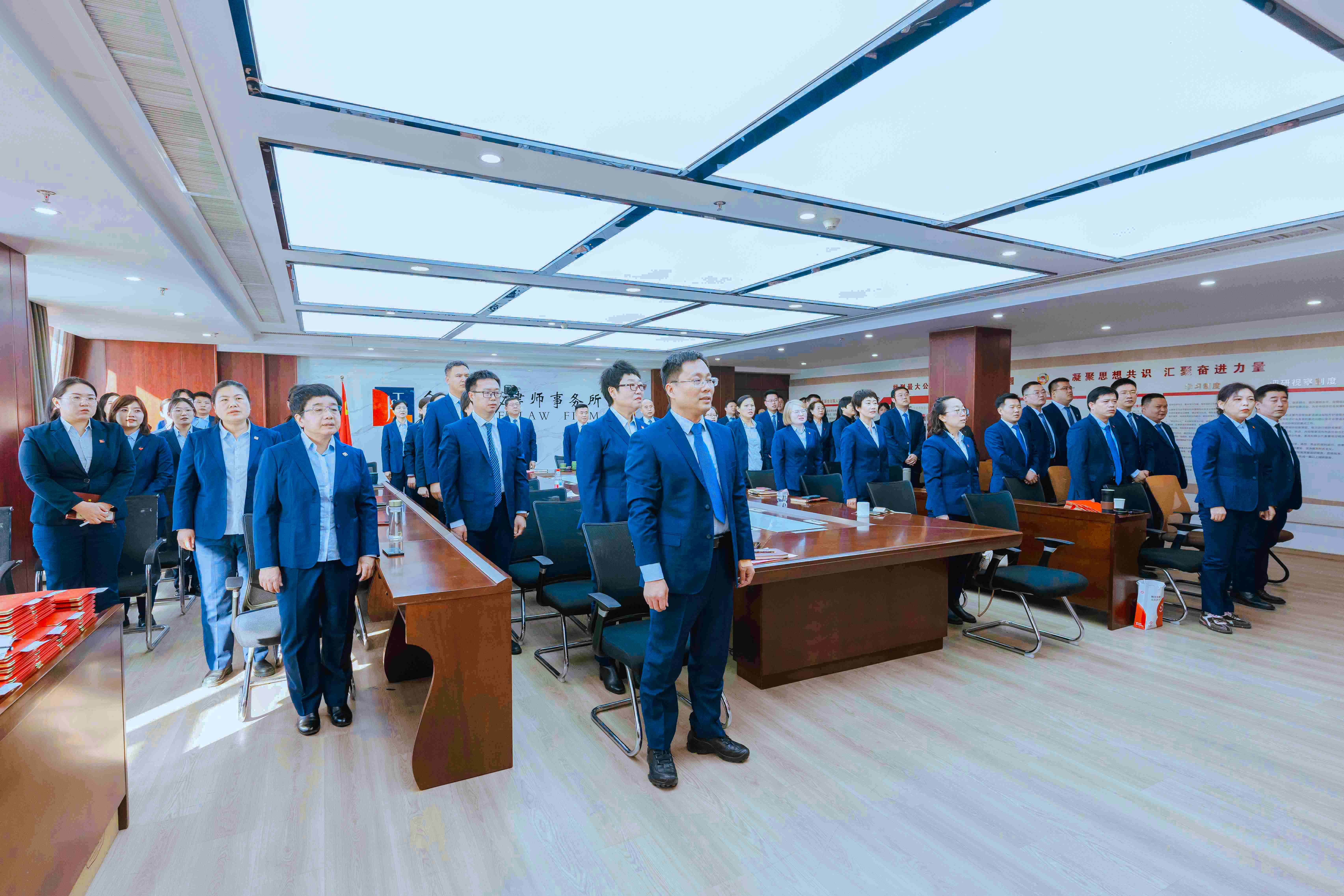 会议由合伙人宋晓光律师主持,在庄严的国歌声中拉开序幕。