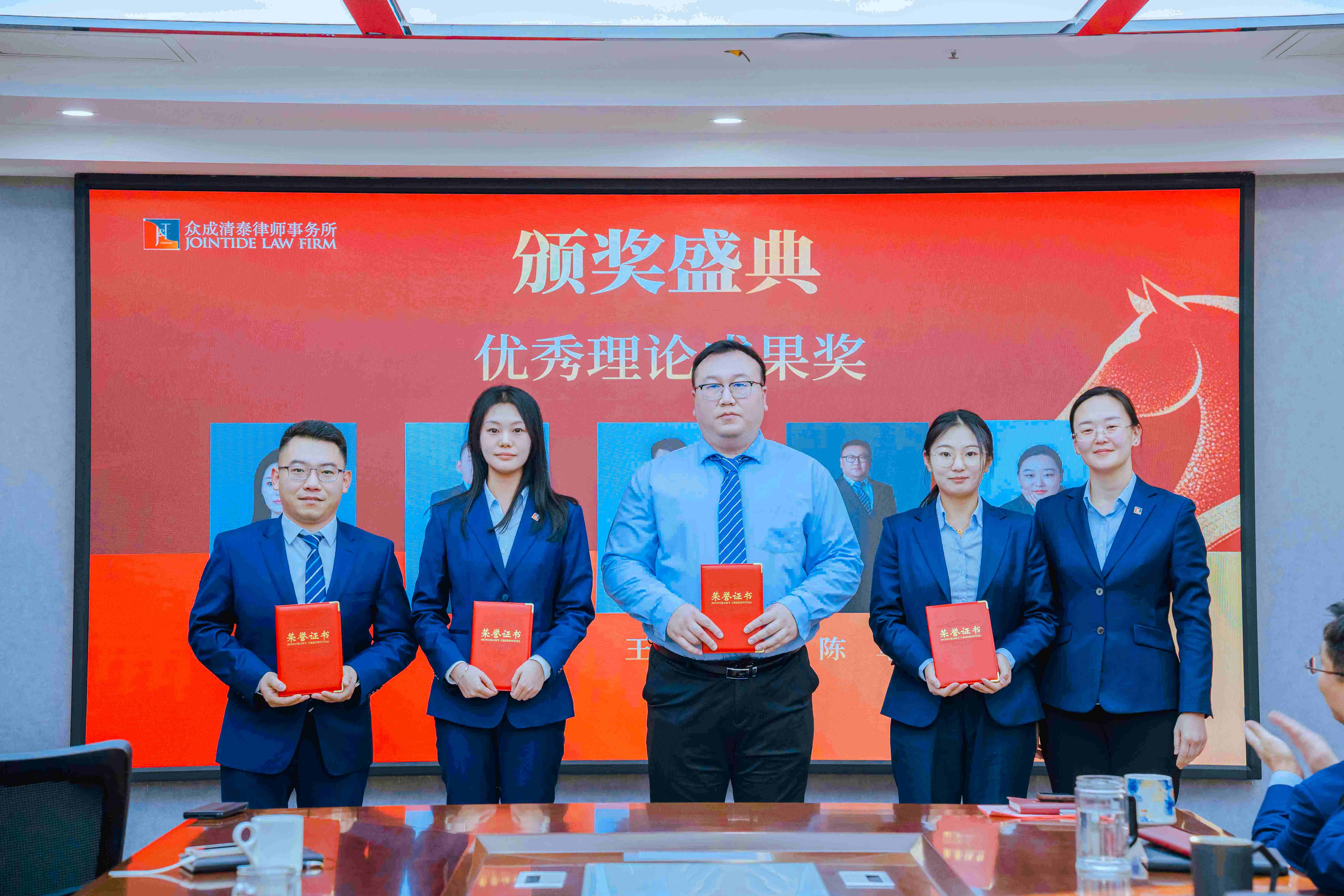 党支部书记魏金辉宣读年度表彰通报,奖项涵盖社会奖项、优秀理论成果奖、新锐之星、优秀律师、优秀党员、优秀员工、热心公益、优秀案例、优秀团队等多项荣誉,全面认可各岗位的卓越贡献与榜样力量。每一项荣誉背后,皆是专注、拼搏与奉献的故事。