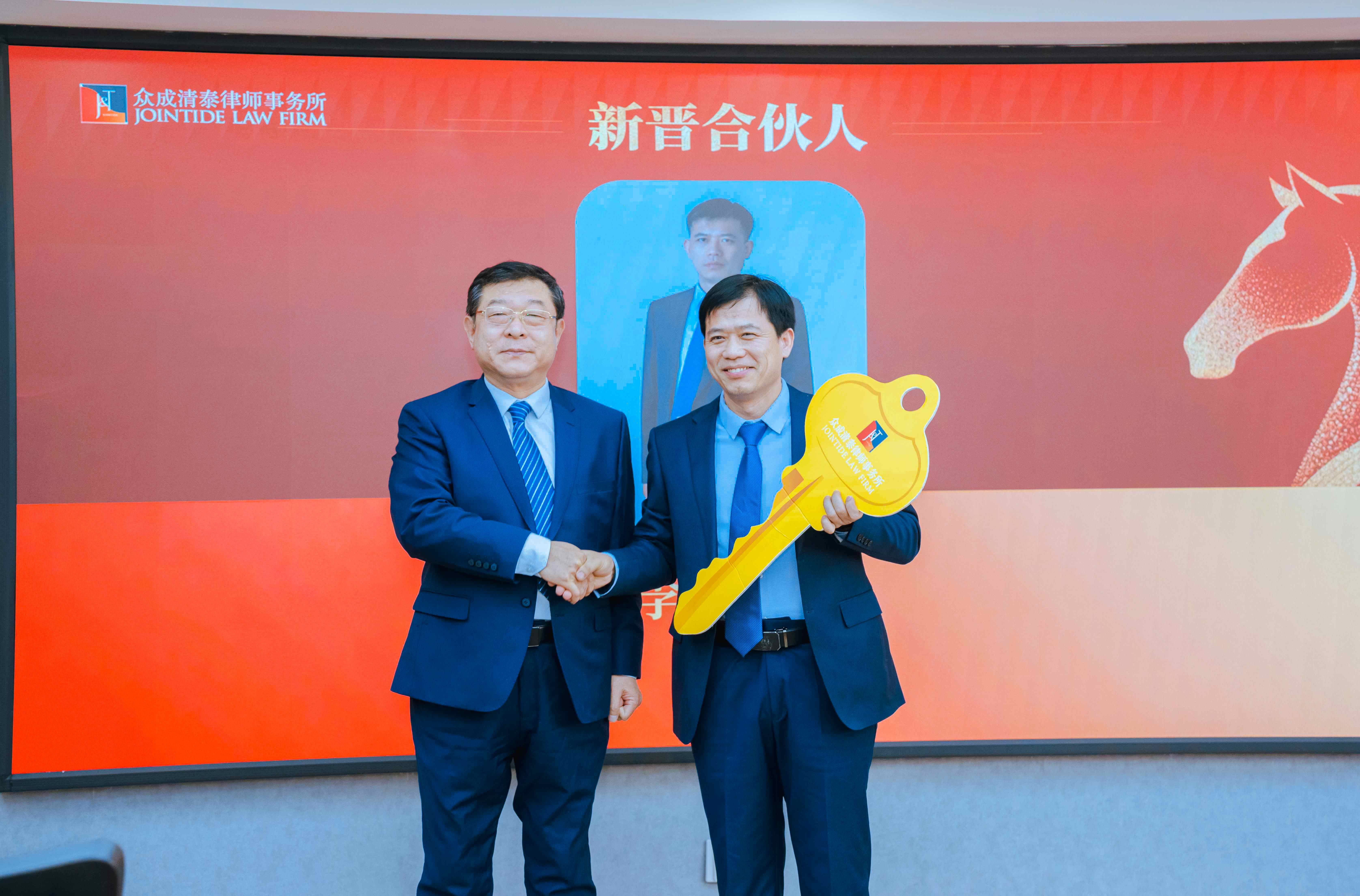 高级合伙人徐荣军宣读推荐词后,艾宪松主任将象征责任与传承的“金钥匙”授予李圣保律师。金匙轻转,开启的是信任,更是共同的未来。