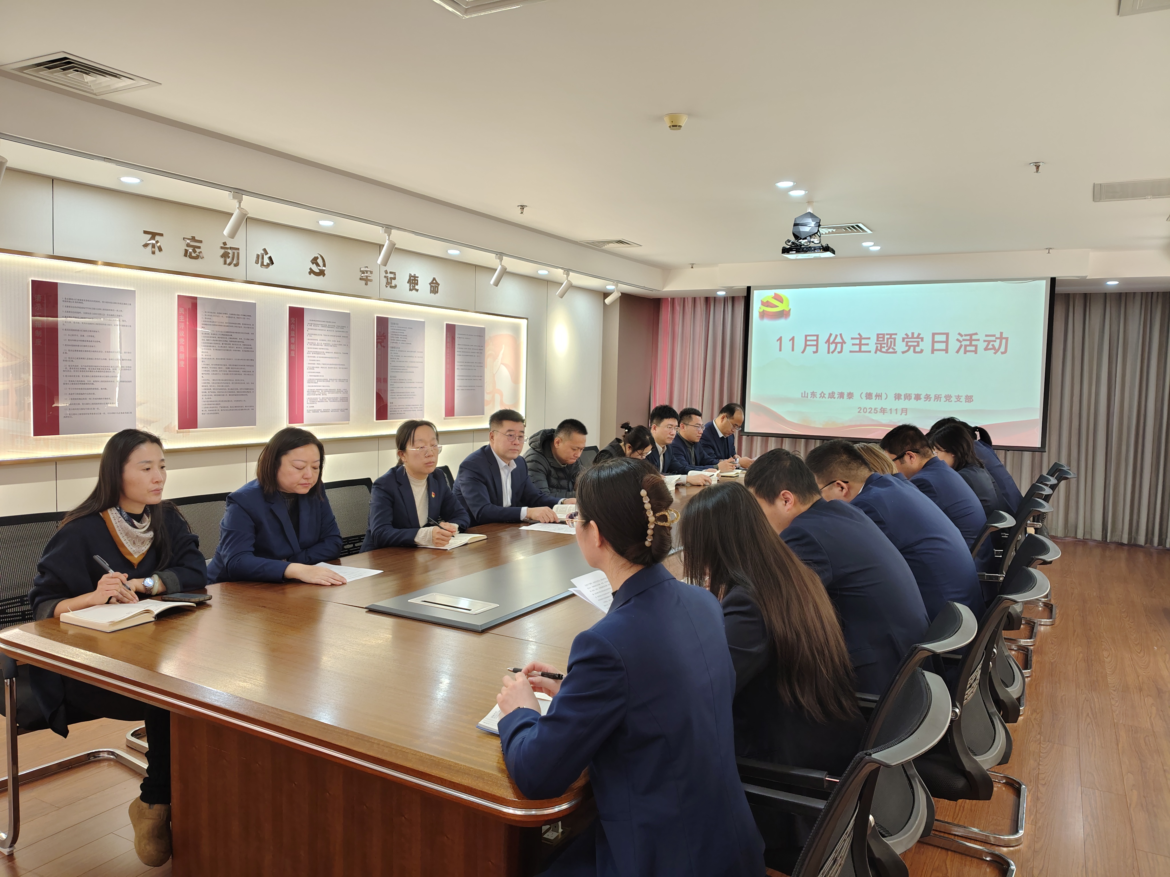 为深入学习贯彻习近平新时代中国特色社会主义思想、党的二十大和二十届二中、三中、四中全会精神,进一步提高党内组织生活质量,不断提升基层党组织的政治功能和组织功能,11月21日,山东众成清泰(德州)律师事务所党支部组织开展11月份主题党日活动。活动由党支部专职副书记李建华主持,在所党员、入党积极分子参加。