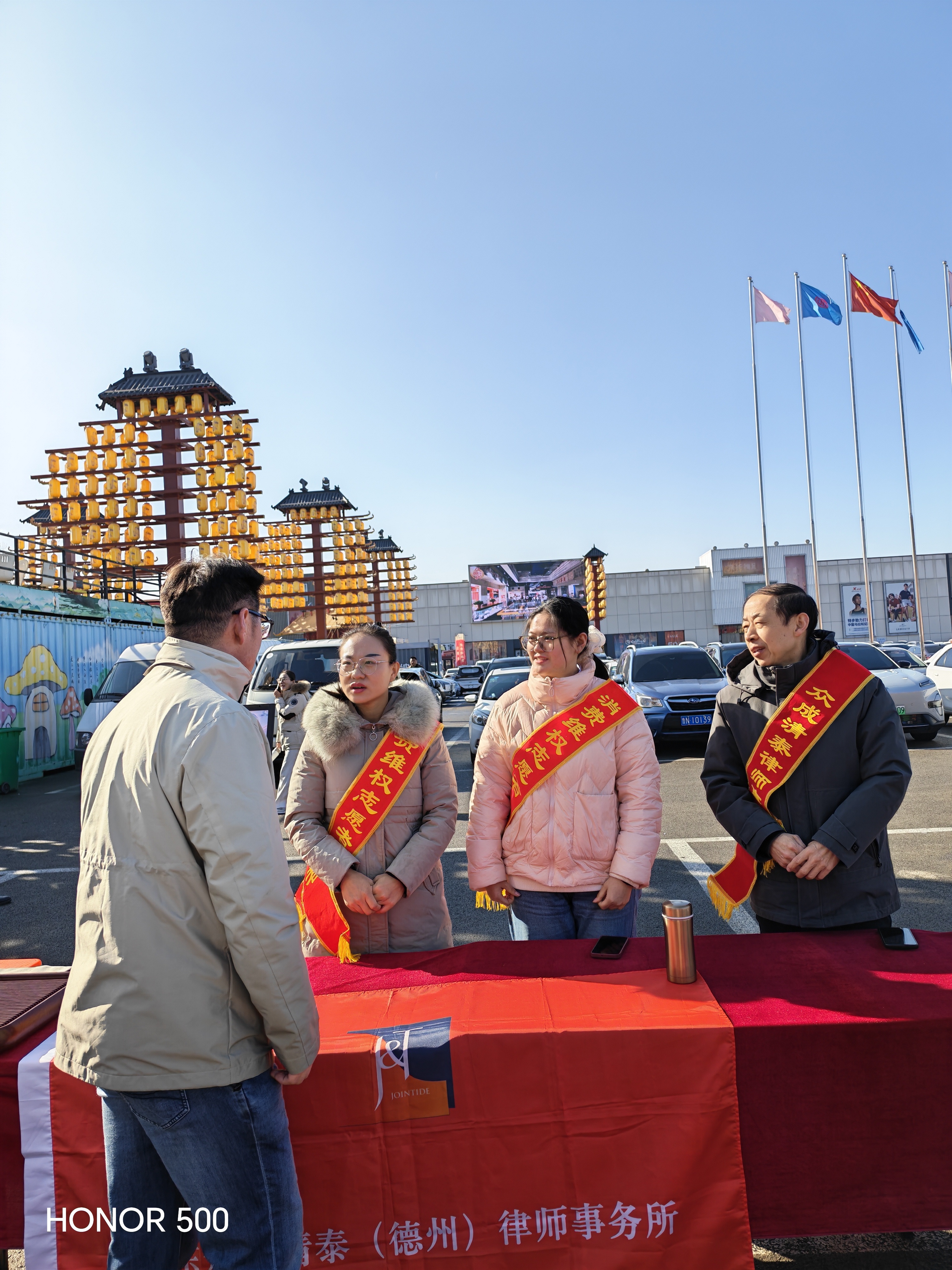 春风送暖,消费维权正当时。在2026年“3·15”国际消费者权益日来临之际,以“提升消费品质 同创美好生活”为主题的德州市放心消费主题活动在德百奥莱广场顺利举办。山东众成清泰(德州)律师事务所组建专业律师志愿服务队,化身消费维权志愿者,现场为市民提供免费法律咨询服务,用专业力量守护消费者合法权益。