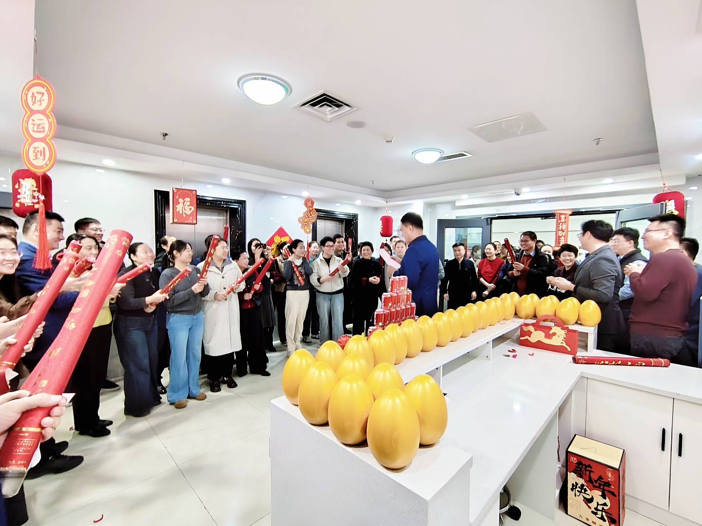 “开工大吉!”“大展宏图!”“马上有喜!”“马跃前程!”“马上暴富!”“马上如意!”——一句句饱含温度与力量的祝福,伴随着金蛋的脆响在空气中回荡,传递着彼此间的鼓励与期许。大家互道吉祥,脸上写满对未来的憧憬与奋斗的激情。